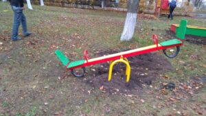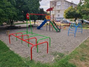 Instalarea unui teren de joacă pentru copii cu sprijinul Președintelui Partidului Nostru Renato Usatîi, instalarea echipamentului sportiv.