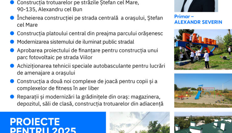 Alexandr Severin, primarul orașului Fălești, susține mereu că viitorul copiilor este cel mai important și că toate acțiunile autorităților trebuie să fie orientate spre acest obiectiv. În 2024, Fălești a cunoscut schimbări semnificative: străzi și trotuare reparate, iluminat public modernizat, grădinițe renovate și noi spații de joacă și fitness. Ales de trei ori din partea Partidului Nostru, Alexandr Severin a depus un efort considerabil pentru a construi o bază solidă pentru un viitor sustenabil. Cu sprijinul lui Renato Usatîi și al întregii echipe, va continua să lucreze pentru dezvoltarea orașului și îmbunătățirea calității vieții locuitorilor săi.