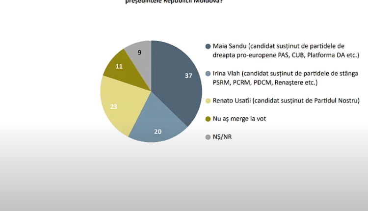 Conform datelor din sondaj, Maia Sandu, susținută de partidele de dreapta pro-europene, ar acumula 37 la sută din sufragii. Pentru fostul bașcan al Găgăuziei, Irina Vlah, susținută de partidele de stângă, ar vota 20 de procente de alegători.