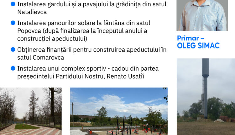 Comuna Natalievca, raionul Fălești. Primar Oleg Simac, Partidul Nostru: Dezvoltăm infrastructura: apeducte, iluminat stradal, amenajarea grădiniței, panouri solare, un nou complex sportiv, cadou din partea lui Renato Usatîi. Împreună facem orașele și satele noastre mai prospere!