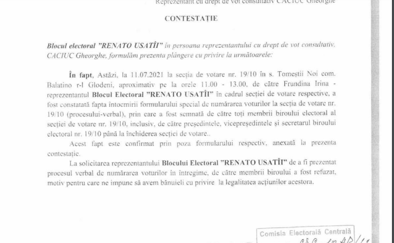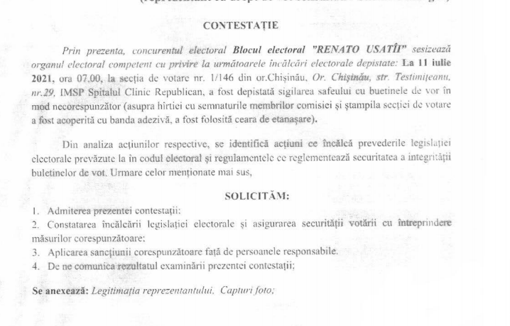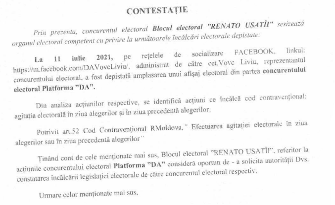 В Центральную избирательную комиссию поступило семь жалоб со стороны электоральных конкурентов. Все жалобы поступили от представителей блока Ренато Усатого.