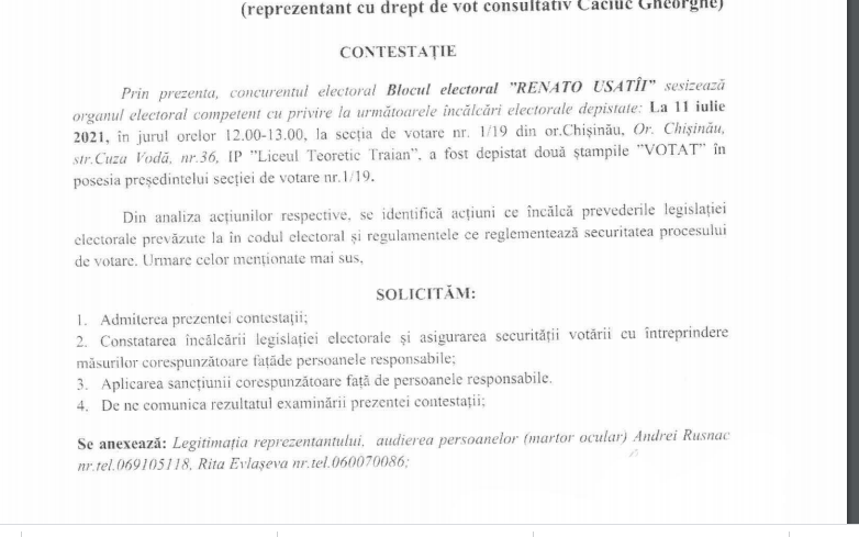 Следующая жалоба поступила в отношении партии «Действие и солидарность» (PAS). Представители блока Ренато Усатого заявляют, что активистка PAS в Италии обзвонила многих соотечественников, призывая идти на выборы и в случае голосования за PAS обещая организовать транспорт до избирательного участка.