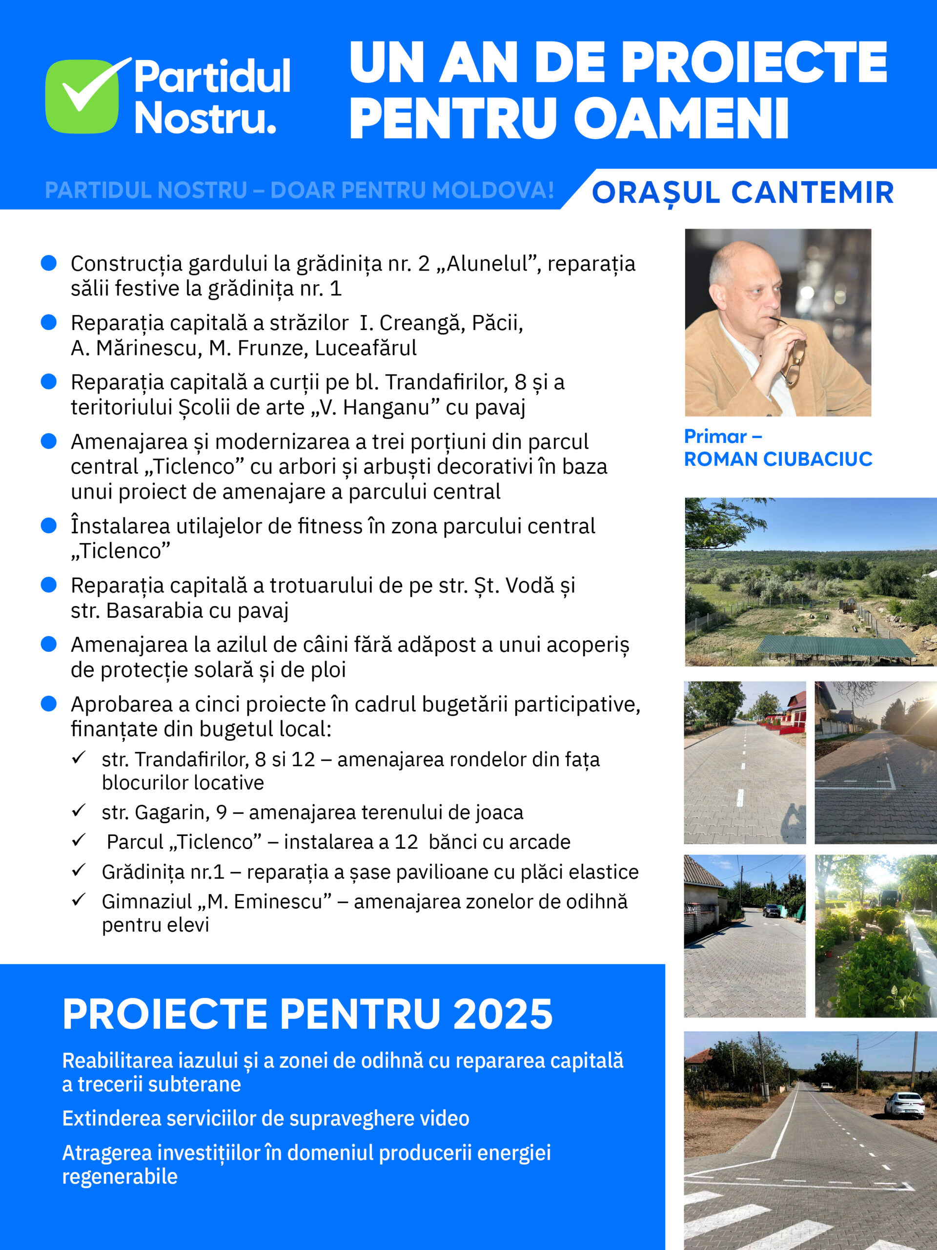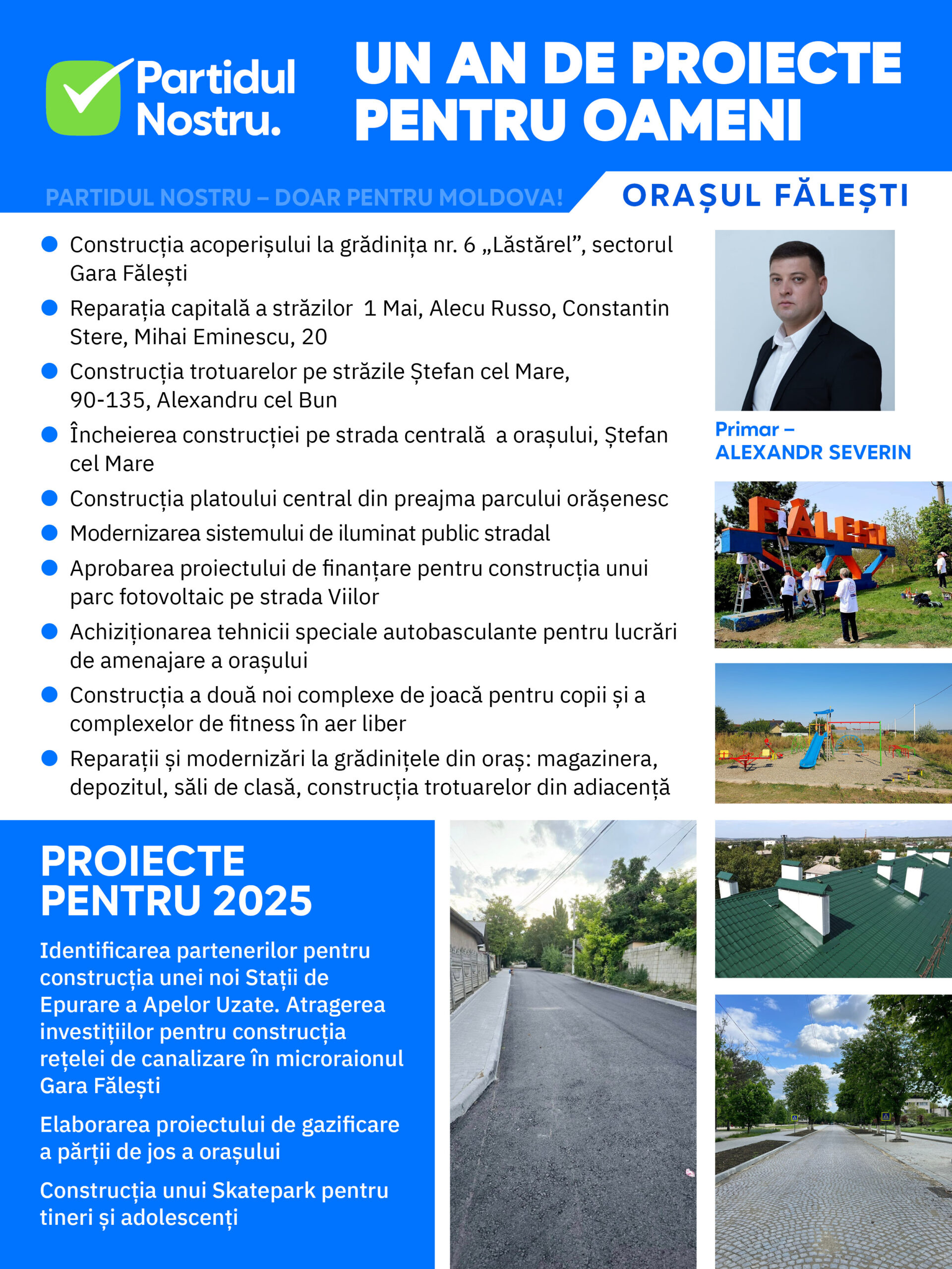 ☑Ales primar al municipiului Bălți pe 19 noiembrie 2023, în cadrul celui de-al doilea tur al alegerilor locale generale, cu voturile a 59,63% de alegători.