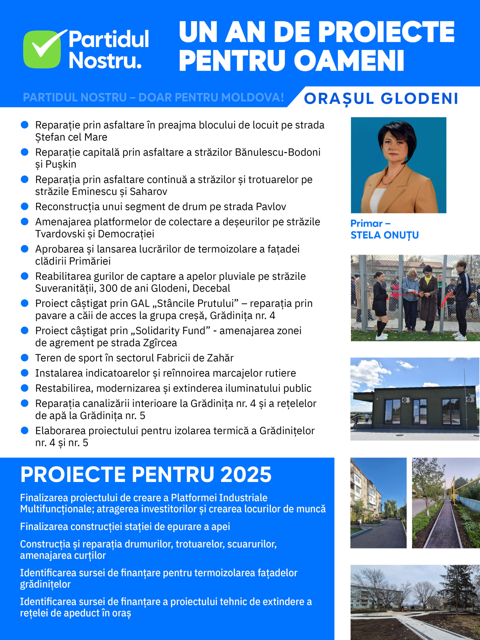 - Finanțare echitabilă pentru Bălți din bugetul republican pentru repararea străzilor Kiev și Stefan cel Mare de la Brigada de Infanterie Motorizată până la ieșirea spre Răuțel.