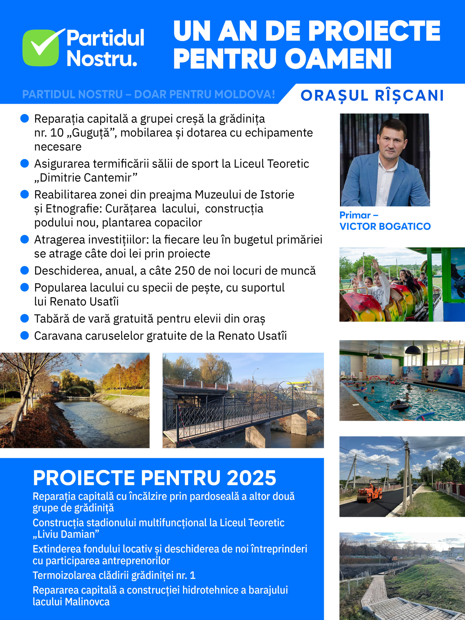 - Dezvoltarea sportului și a infrastructurii sportive. Construcția a 2 piscine orășenești. Locațiile construcției acestora vor fi stabilite pe baza rezultatelor consultărilor cu cetățenii.