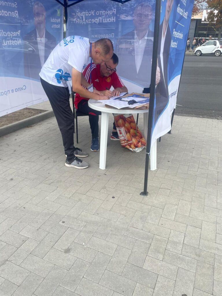 Сбор подписей начался 21 августа и завершится не позднее 20 сентября. Старт сбора подписей был дан Ренато Усатым 24 августа прямо перед зданием Администрации президента – местом его будущей работы в качестве президента страны. Ежедневно Ренато Усатый лично участвует в сборе подписей в различных населенных пунктах страны. В пятницу, 30 августа, он посетил Рышканы и лично поблагодарил людей, которые приходят подписаться в поддержку его кандидатуры на пост президента Республики Молдова.