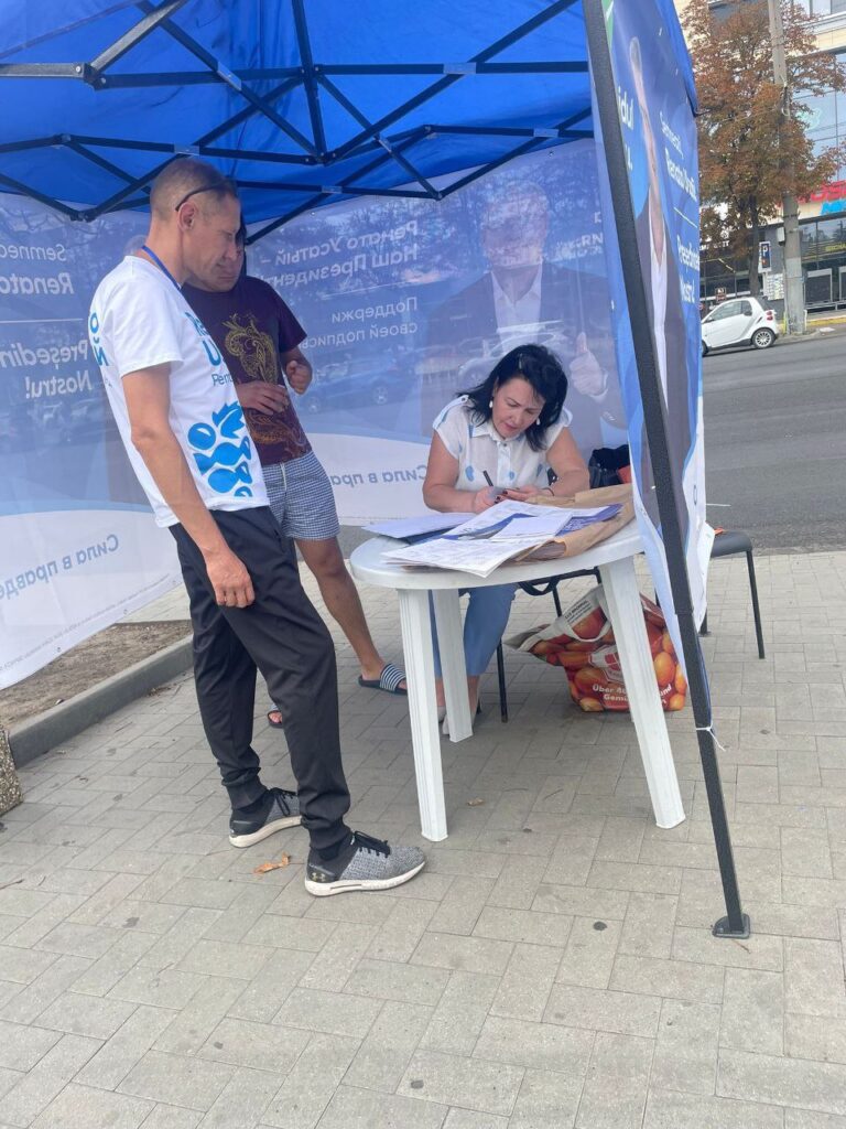 Члены инициативной группы собирают подписи по всей стране в поддержку кандидатуры Ренато Усатого на пост президента. В столице подписи можно поставить в палатках Нашей Партии, установленных во всех микрорайонах города, в штаб-квартире партии, или можно попросить сборщика подписей приехать к вам. Лицо, уполномоченное ЦИК для сбора подписей, прибудет по указанному адресу и соберет подписи в соответствии с законодательными требованиями.