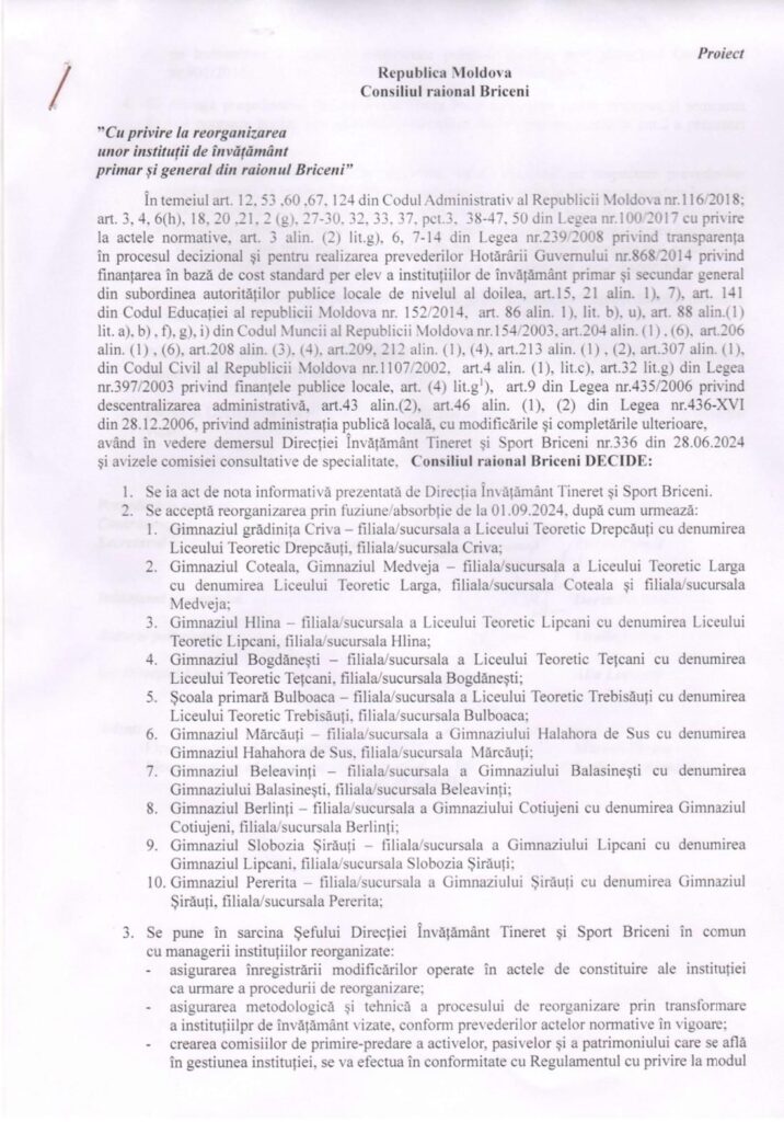 Советники социалисты в Бричанском районном совете проголосовали за объединение путем поглощения 11 учебных заведений района. Их решение вызвало возмущение в населенных пунктах, жители которых считают, что это первый шаг к окончательной ликвидации школ.
