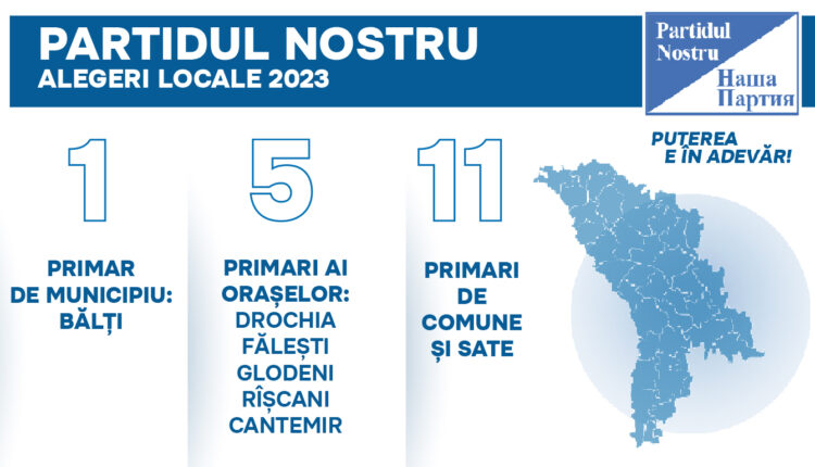 Шесть кандидатов Нашей Партии станут примарами в своих населённых пунктах во второй раз. Это Александр Северин в городе Фэлешть, Роман Горачок — коммуна Помпа района Фэлешть, Виктор Коваленко — коммуна Бэхринешть района Флорешть, Анатолие Гнатюк в селе Фундурий Векь района Глодень, Виорел Зарижа в селе Глинжень района Фэлешть, Олег Пыкалеу в селе Иленуца района Фэлешть.